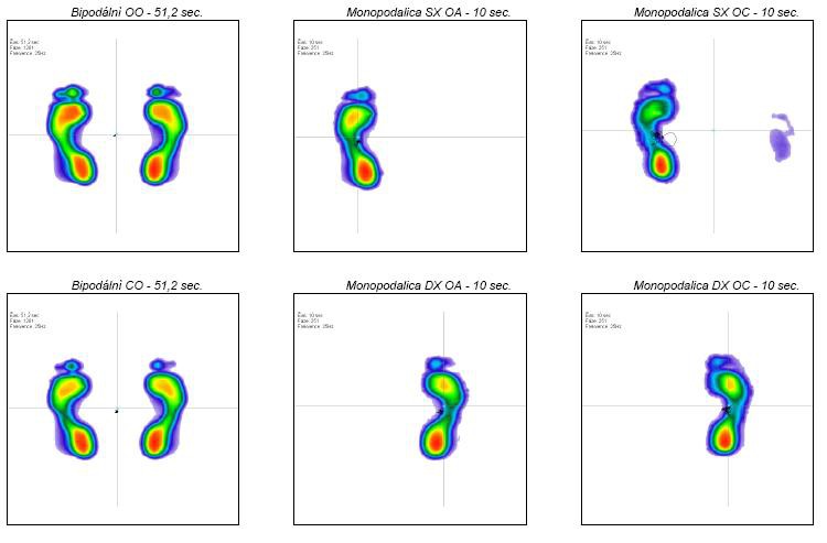Šest dílčích testů vyšetřuje stabilitu při stoji na obou/jedné dolní končetině s otevřenýma/zavřenýma očima. Měření probíhá u stoje na obou končetinách 51,2s a ve stoji na jedné dolní končetině 10s. Tyto testy se vždy měří bez obuvi. Výsledný report zobrazuje projekci COP ve srovnání s ideálními hodnotami.