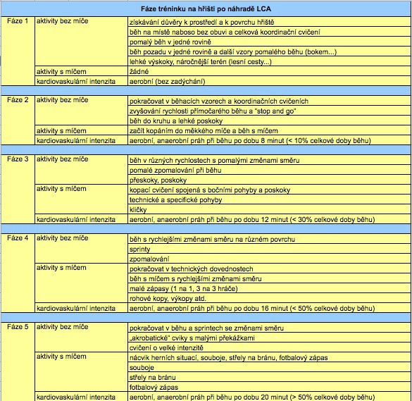 Kolenní kloub představuje největší a zároveň nejsložitější kloub v lidském těle, tudíž i nejčastěji poraněný. K poranění předního zkříženého vazu (ligamentum cruciatum anterius – zkr. LCA) dochází zejména u sportující populace ve věku 15-25 let. Pro návrat ke sportovním aktivitám, které vyžadují torzní pohyby či doskoky, musí sportovci s přetrženým vazem často podstoupit rekonstrukční zákrok. I přesto, že chirurgický zákrok je velmi důležitý, rehabilitace hraje plnohodnotnou roli v obnově plné funkce kolenního kloubu bez ohledu na to, jaký štěp a jaká technika byly při operaci použity. Hlavním cílem léčby sportovních poranění je navrátit funkci rekonstruovaného vazu pro sportovně specifické pohyby. Lékařská péče je obvykle během prvních měsíců po operaci vysoká, postupně se snižuje, když se pacient/fotbalista vrací na hřiště. Dále je většinou ponechán již v péči trenéra, který je spíše připraven na trénink zdravých jedinců než na sportovce v rekonvalescenci po operaci. Zacházení s konečnou fází rehabilitace tímto způsobem může způsobit určité problémy a komplikace, recidivy nebo neúplné nervosvalové zotavení.
